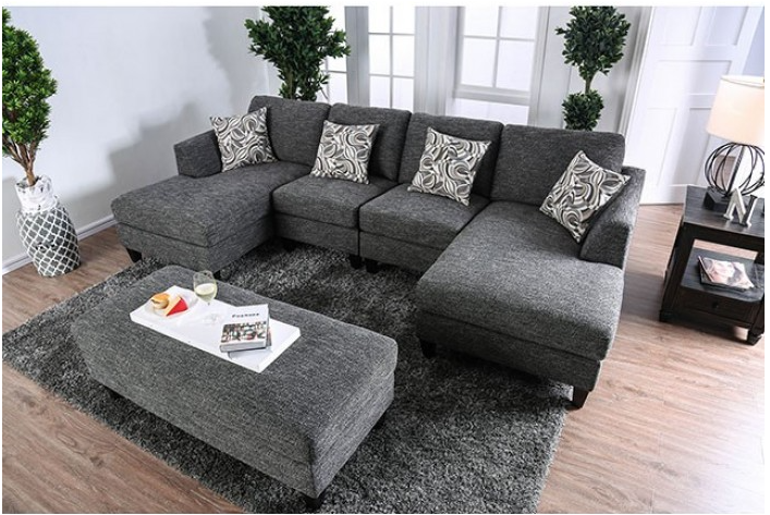 Relax in style with the Lowry Sectional and Ottoman set, perfect for creating your ultimate comfort zone. Its plush cushions and sleek transitional design make it an inviting centerpiece for any living space. Upholstered in cool gray chenille, this sectional is complemented by patterned accent pillows that add a decorative touch. High-density foam cushions and fitted back pillows provide superior comfort and support. With its tapered feet and included ottoman, this set offers both functionality and modern flair. Pillows included for added coziness and style.
